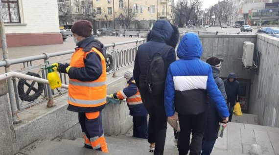 Комунальники також здійснюють дезинфекцію зупиночних комплексів та підземних пішохідних переходів: обробляють поручні, перила, лавки, ліфти. В усіх житлових будинках проводяться санітарні роботи. Така дезінфекція проводиться в усіх районах столиці, повідомив заступник голови КМДА Олександр Густєлев.