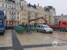 Туди привезли каркас новорічного дерева. Сьогодні також довезуть й інші частини конструкцій, пише "Сьогодні".