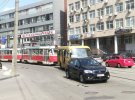 У Києві на Подолі черга з трамваїв розтяглася на сотні метрів. У заторі стоять понад 10 трамваїв маршрутів №14 і №18.