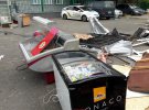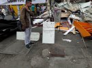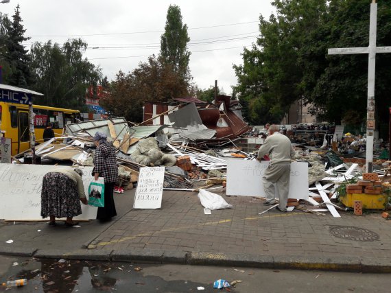 Деякі кіоски повністю розгромлені. Зранку підприємці збирали свій товар. Подекуди видно уцілілі морозильні камери, на дорозі валяються шматки ковбаси.