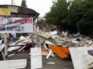 У Києві в ніч на 22 серпня біля виходу зі станції метро Політехнічний інститут знесли 17 МАФів. Зараз комунальники збираються згрібати обломки бульдозерами й вантажити на самоскиди.