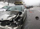 Спочатку зіткнулося два автомобілі. Одна з машин, яка їхала позаду, спробувала об'їхати аварію, коли її на швидкості ззаду наздогнав інший автомобіль. Від удару першу автівку відкинуло на зустрічну смугу, де в неї врізалися ще кілька автомобілів, повідомила ТСН.