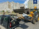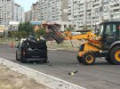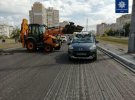 У Києві на вул. Анни Ахматової під час ремонту асфальтового покриття тракторист ковшем розтрощив дах автомобіля.