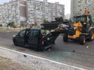 У патрульній поліції Києва зазначають, що йдеться про автомобіль Peugeot і екскаватор JCB. Водій першого звернувся по медичну допомогу.