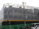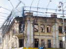 Після пожежі у 2017-му році дах столітнього будинку сильно постраждав, а остаточний удар йому завдав сильний вітер. Згорілий фасад понад рік був захований під банером.