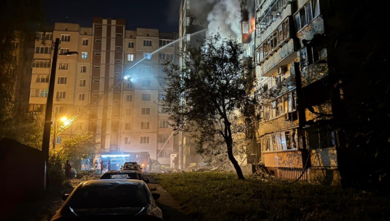 У Дарницькому районі зафіксоване влучання у чотириповерховий житловий будинок - пожежа на двох поверхах та часткове руйнування.