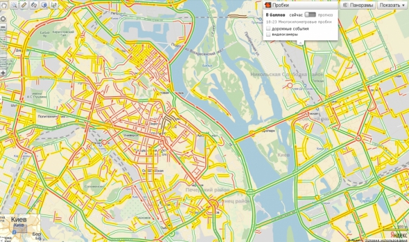 У Києві станом на 18:27 затори досягли 8 балів за 10-бальною шкалою. Про це повідомляє сервіс Яндекс.Пробки.