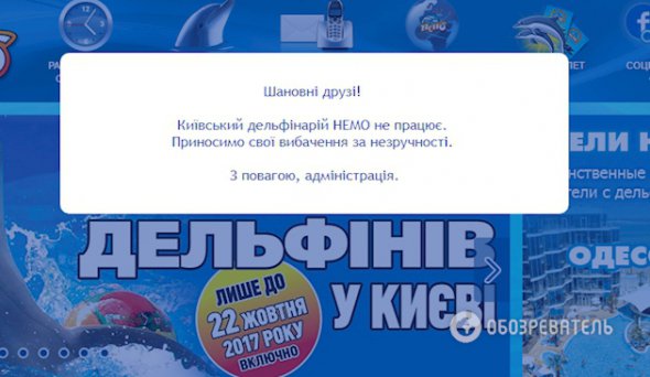 А на офіційному сайті дельфінарію також зазначено, що заклад не працює.