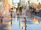 На Деміївській площі поблизу фабрики Roshen у Києві відкрили громадський простір із фонтанами та світловим шоу.