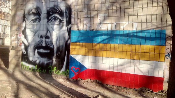 В Києві з'явився невеликий мурал на підтримку перейменування бульвара Івана Лепсе на бульвар Вацлава Гавела.