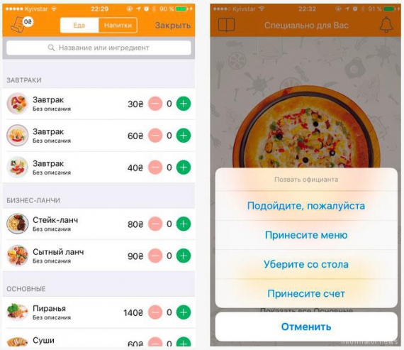Через додаток можна передавати інформацію офіціанту про свої найулюбленіші страви та вказувати на які продукти є алергія. Столик за яким сидить замовник, програма визначатиме автоматично.