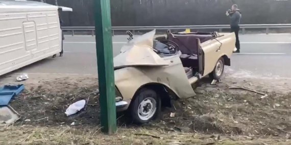 За кермом "Москвича" був рятувальник ДСНС у Київській області, молодший сержант служби цивільного захисту 40-річний Дмитро Талімончак. Його дружина померла в реанімації, повідомила у Facebook спільнота dtp.kiev.ua.