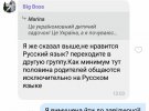 Вона стверджує, що її донька навчається в україномовному дитячому садку, де більшість батьків спілкується винятково російською. Через неприязнь до них, її доньку змусили у дитячому садку у виставі грати жабу. Матір вважає, що через це її дитину в подальшому можуть цькувати, а тому відмовилася від цієї ролі.