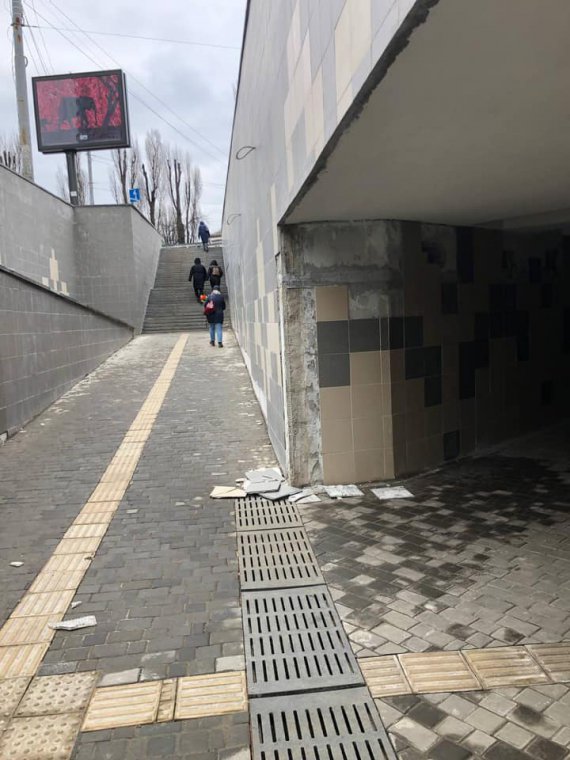 У підземному переході Києва на Караваєвих дачах обвалюється плитка. Ремонтувати перехід взялися ще восени.