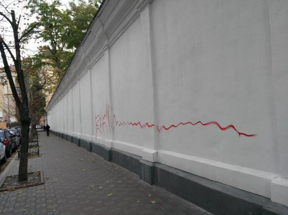 У столиці хулігани червоною фарбою розмалювали стіни Національного заповідника "Софія Київська".