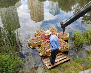 Працівники Київзеленбуду спустили на воду першу плавучу клумбу у парку Перемога поблизу станції метро Дарниця.