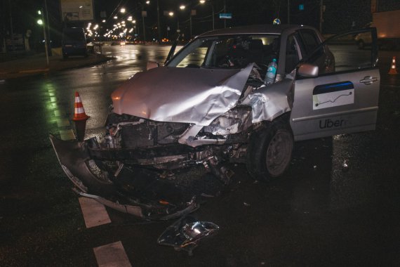 У авто Uber дуже пошкоджена передня частина кузова, а в Lacceti - бічна частина. На місці працювали патрульні і медики. Деталі інциденту встановить слідство.