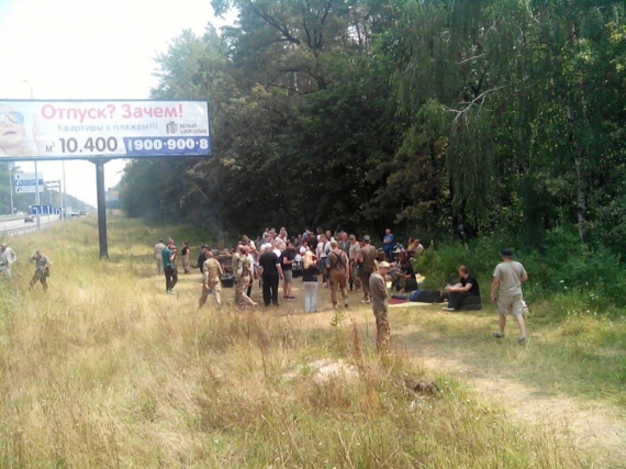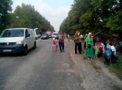 Неподалік блокпосту поліції за 19 км від Києва на хресну ходу чекають близько півсотні націоналістів на чолі з Миколою Коханівським.