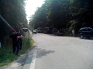 Співробітники поліції перекрили дорогу трьома мікроавтобусами. У село пускають лише місцевих.