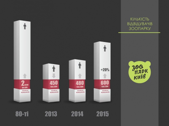 Мер відзначив, що у1980-х роках столичний зоопарк відвідували 2 млн людей на рік. 2014 року - лише 450 тис. Водночас, після зміни керівництва, минулого року відвідуваність звіринцю зросла до 600 тисяч, а цього року є тенденція до збільшення цього показника ще на 20%.