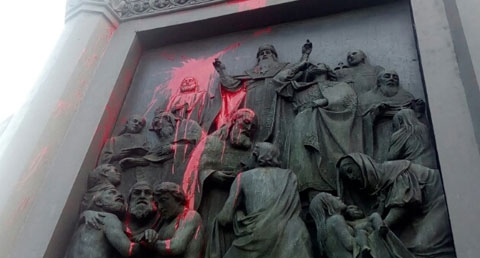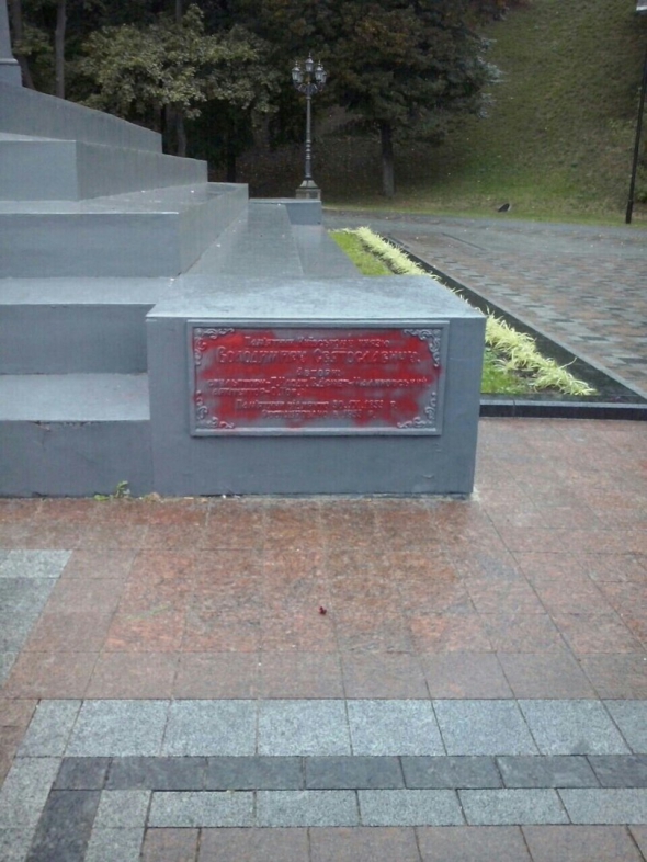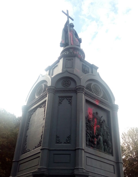 Вандали облили пам'ятник Володимиру Великому фарбою.
