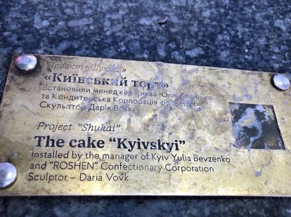 У столиці невідомі пошкодили міні-скульптурку київського торта, встановлену в рамках проекту "Шукай".