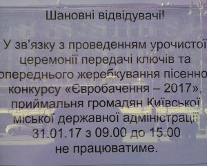 31 січня о 12.00 у Колонній залі Київської міськадміністрації урочисто передадуть ключі та проведуть попереднє жеребкування пісенного конкурсу Євробачення.