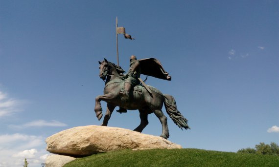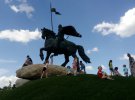 В столичному парку "Муромець" на Трухановому острові встановили пам'ятник богатирю часів Київської Русі Іллі Муромцю.