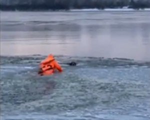 "Пробираючись через кригу, що була слабкою та крихкою, рятувальник швидко дістався до песика. Далі їх вже двох оперативно дотягнули до берега інші рятувальники", - розповідають у службі.