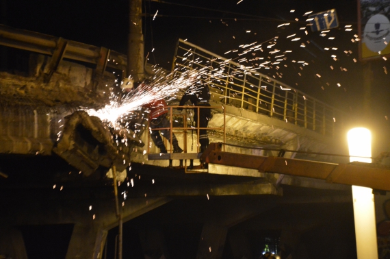 У столичній владі припускають повне закриття руху на Шулявському шляхопроводі. Сьогодні обвалилась частина перекриття.