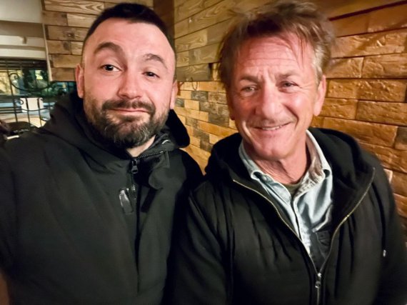 Пенн вже не перший день в Києві. У понеділок він записував інтерв'ю із власником Pizza Veterano Леонідом Остальцевим.