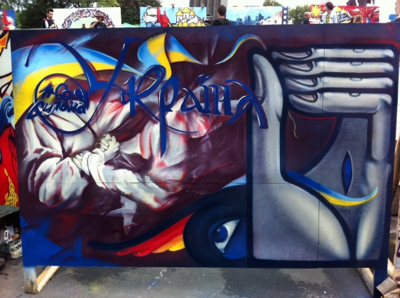 Було і творіння за мотивами гри Angry birds - злі пташки, які повинні врятувати Україну. Переможцями судді вибрали київську команду "89". Хлопці зобразили стилізований тризуб, що пробиває воду та каміння. Художники отримали $ 1 тисячу і можливість прикрасити нову 12-поверхівку на Хрещатику в районі Бессарабки.