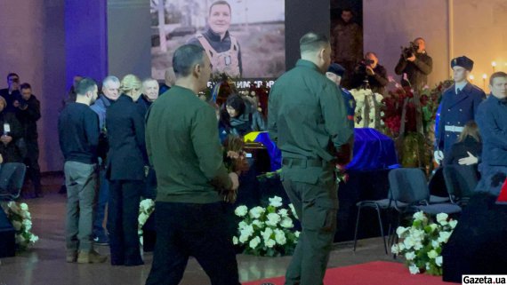 Президент Володимир Зеленський із дружиною Оленою попрощалися із загиблими керівниками міністерства внутрішніх справ. Траурна церемонія проходить в столичному Українському домі.