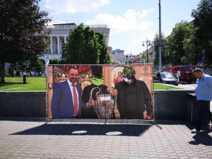 У Києві на майдані Незалежності встановили банер із зображенням президента Федерації футболу України Андрія Павелка. Стенд присвятили скандальному турне кубка Ліги чемпіонів Україною.