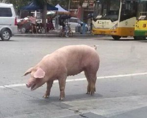 У мережі з'явилося відео "сутички" невідомого чоловіка зі свинею на даху вантажівки. Інцидент зняли на автомобільний регістратор на одній з доріг Білої Церкви, що на Київщині.