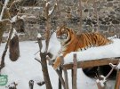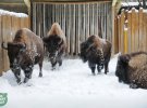 Погода тваринам не зіпсувала настрій. На фото видно, як вони захопливо оглядають засніжені володіння. Окремі навіть качаються у заметах і прогулюються білими стежками.