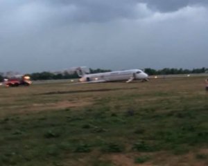 Усіх пасажирів евакуювали. За словами очевидців, у результаті жорсткої посадки у літака відпали колеса і розлилося паливо.