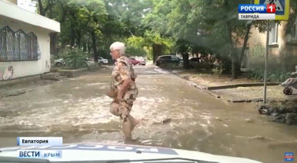 Повідомляється, що Євпаторію накрив апокаліпсис. У місті пройшов сильний вітер, град і проливний дощ. Вулиці перетворилися на річки. На пляжі випав сніг.
