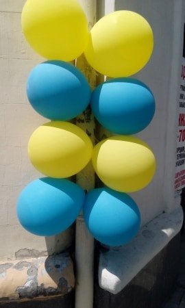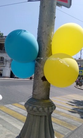 На вулиці Велика Морська в окупованому Севастополі на ліхтарях розвісили надувні кульки кольорів українського прапора.