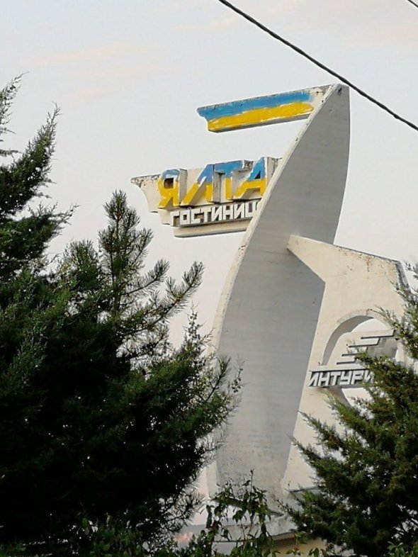 У ніч на 23 серпня невідомі пофарбували в жовто-блакитні кольори стелу, що веде до готелю "Ялта Інтурист".