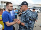 Моряків зустрічають не тільки родичі, але і командування Військово-морського флоту Збройних сил. Командувач Ігор Воронченко, прямо на плацу вручає нові офіцерські погони Роману Мокряку та Богдану Небелиці. Їх іменні кортики обіцяє вручити пізніше – на зустріч зброю заборонила виносити Державна служба охорони.