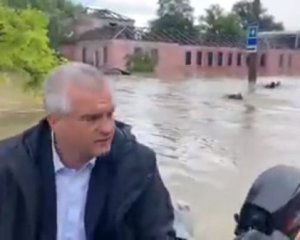 Аксьонов оглянув знеструмлений центр міста на моторному човні разом із місцевими "чиновниками", передає РБК. Деяким супроводжувачам забракло місця, тож вони вирушили вплав.