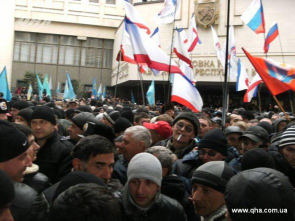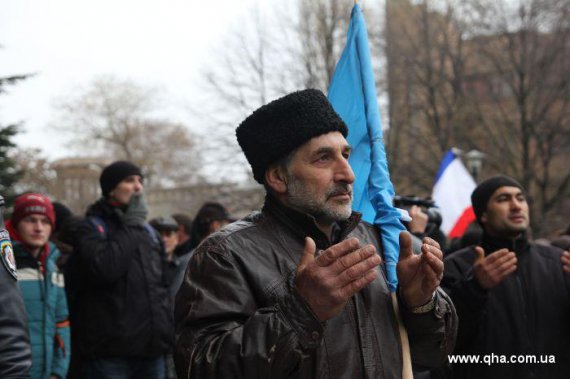 26 лютого 2014 року біля Верховної Ради півострова 12 тис. татар та проукраїнських активістів вийшли на мітинг проти анексії Криму.