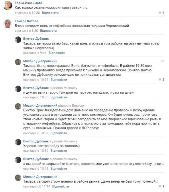 Біля нафтобази сталий сморід бітуму, сірководню і мазуту, на вікнах будинків утворюється дивний наліт, що важко змивається.