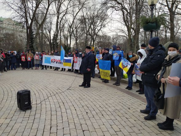 Усього на акцію зібралося близько 200 людей. Всі приїхали до Києва після окупації Криму, познайомилися між собою. Багато хто дружить родинами. При зустрічі вітаються один з одним. Говорять про політику та родичів і друзів, що залишилися в Криму.