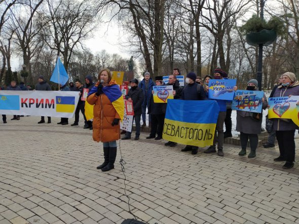 - Сказати там, на території тимчасово-окупованого півострова фразу "Крим — це Україна" значить підписати собі тюремний вирок, - каже Ольга Скрипник з Кримської правозахисної групи. Стоїть у столичному парку Шевченка, що біля однойменного університету. Вона є однією з організаторок щорічної акції солідарності з проукраїнськими кримчанами, які зараз живуть в умовах російської окупації.