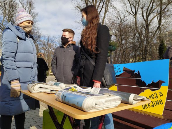 Цьогоріч організатори вирішили привернути увагу до заборони україномовного контенту та української мови на півострові. Приїхали заздалегідь. Привезли примірники газети "Кримська Світлиця", листівки та кошик для книг.