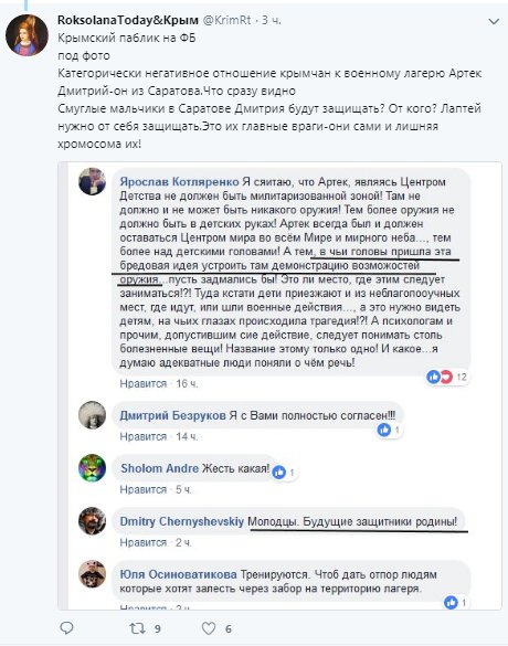 "Артек – центр дитинства, і повинен бути мілітаризованою зоною. Там не повинно і не може бути зброї. Тим більше, зброї не повинно бути в дитячих руках", - пише Ярослав Котляренко.
