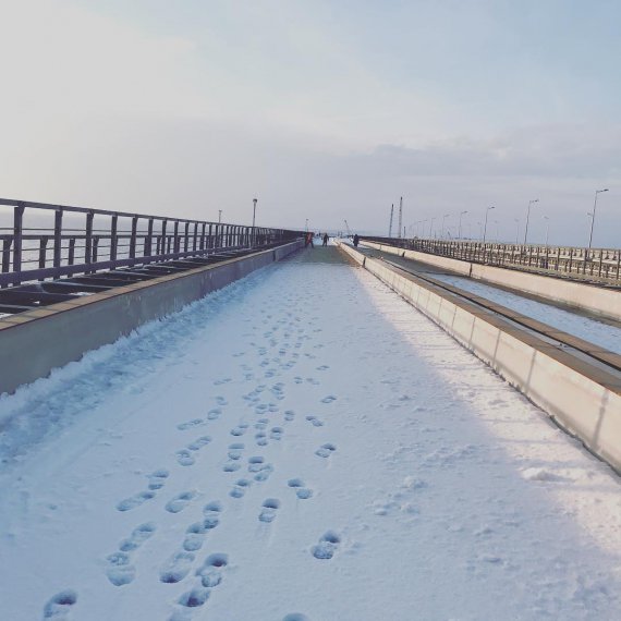 Блогер із анексованого півострова показав свіжі кадри побудованого окупантами Кримського мосту. Фотографії споруди окупантів опубліковані на сторінці блогера RoksolanaToday&Крим у Twitter.
