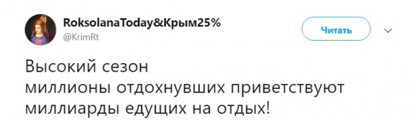 "Високий сезон. Мільйони людей, які відпочили, вітають мільярди, які їдуть на відпочинок!" - йдеться у підписі до фото.